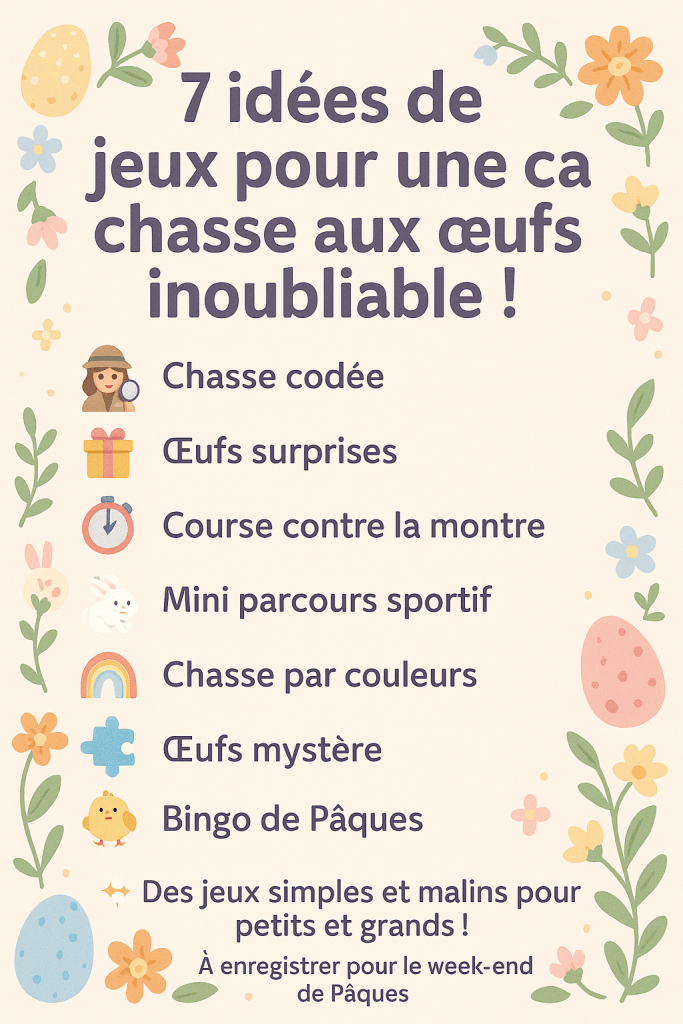 Ces jeux sont faciles à mettre en place avec peu de matériel, et s’adaptent aussi bien à un jardin qu’à un salon. Ils permettent de faire durer le plaisir, d’occuper les enfants tout en stimulant leur curiosité… et de créer de jolis souvenirs. Avec un peu d’imagination, la chasse aux œufs devient une véritable aventure.